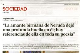 "La amante birmana de Neruda dejó una profunda huella en él hay referencias de ella en toda su poesía" / [artículo] : Andres Gómez Bravo. La Tercera (Diario : Santiago, Chile) jul. 29, 2017 p. 76 y 77. .
