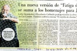 Una nueva versión de "Fatiga de material" se suma a los homenajes para Jorge Díaz [artículo] / Eduardo Miranda. El Mercurio (Diario : Santiago, Chile)-- mar. 31, 2017, p. C14. .