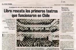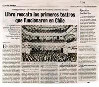 Libro rescata los primeros teatros que funcionaron en Chile [artículo] Fabián Llanca.
