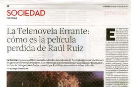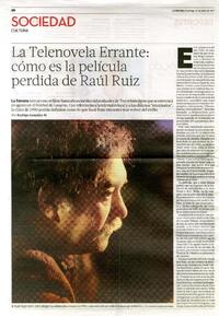 La telenovela Errante Cómo es la película perdida de Raúl Ruiz / [artículo] : Rodrigo González ;[Fotos de] Raúl Ruiz La Tercera (Diario : Santiago, Chile)-- jul. 30, 2017, p. 48-49. .