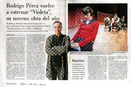 Rodrigo Pérez vuelve a estrenar "Violeta", su novena obra del año [artículo] Eduardo Miranda.