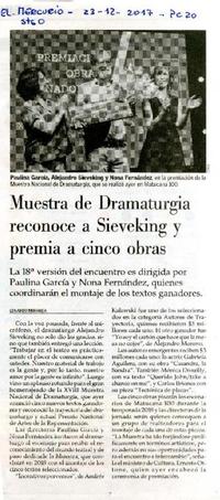 Muestra de Dramaturgia reconoce a Sieveking y premia a cinco obras [artículo] / El Mercurio (Diario : Santiago, Chile)-- dic. 12, 2017, p. C20. .