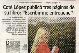 Coté López publicó tres páginas de su libro: "Escribir me entretiene" [artículo] / Bárbara Valladares. Las Últimas Noticias (Diario : Santiago, Chile)-- jun. 16, 2020, p. 27. 1 página : ilustración en color ; 35 cm. .