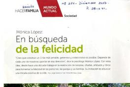 Mónica López : en búsqueda de la felicidad [entrevista] / [artículo] : Por Jorge Velasco Cruz. Hacer familia (Revista : Santiago, Chile)-- no. 254 (diciembre 2017), p. 38 a 41. .