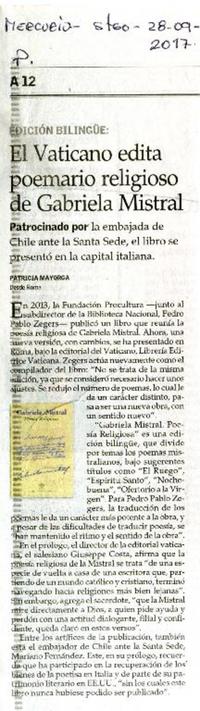 El Vaticano edita poemario religioso de Gabriela Mistral [artículo] Patricia Mayorga.