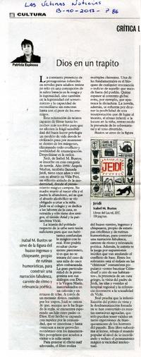 Dios en un trapito [artículo] / Patricia Espinosa. La Tercera (Diario : Santiago, Chile)-- oct. 13, 2017, p. 86. .