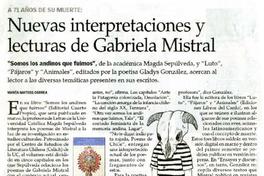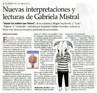 Nuevas interpretaciones y lecturas de Gabriela Mistral [artículo] / María Mateos Correa. El Mercurio (Diario : Santiago, Chile)-- ene. 11, 2018, p. A8. .