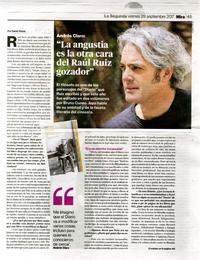 Andrés Claro "La angustia es la otra cara del Raúl Ruiz gozador" [artículo] : Por Daniel Rozas.