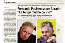 Fernando Paulsen sobre Baradit "le tengo mucho cariño" [entrevista] [artículo] : Sergio Vallejos.