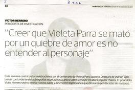 "Creer que Violeta Parra se mató por un quiebre de amor es no entender al pesonaje" [entrevista] / [artículo] : Por Marisol García. La Tercera (Diario : Santiago, Chile)-- sep. 30, 2017, p. 4. .