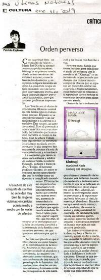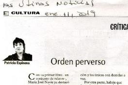 Orden perverso [artículo] / Patricia Espinosa. Las Últimas Noticias (Diario : Santiago, Chile)-- ene. 11, 2019, p. 78. .