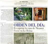 Orden del día : recuperar la casa de Nicanor Parra en la Reina [artículo] / María Teresa Cárdenas. El Mercurio (Diario : Santiago, Chile)-- dic. 24, 2017, p. E1 (suplemento "Artes y Letras") .