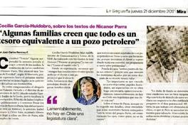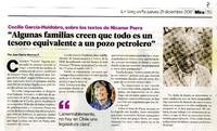 "Algunas familias creen que todo es un tesoro equivalente a un pozo petrolero" [artículo] / Por Juan Carlos Ramírez. La Segunda (Diario : Santiago, Chile) dic. 21, 2017, p. 35. .