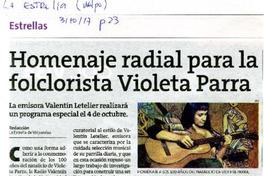 Homenaje radial para la folclorista Violeta Parra [artículo] / La Estrella de Chile (Valparaiso, Chile)-- oct. 31, 2017, p. 23. .