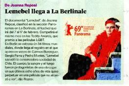 Lemebel llega a la Berlinale [artículo] / De Joanna Reposi. La Segunda (Diario : Santiago, Chile)-- ene. 22, 2019, p. 21. .