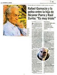 Rafael Gumucio y la pelea entre la hija de Nicanor Parra y Raúl Zurita "Es muy triste" [artículo] : Fany Mazuela.