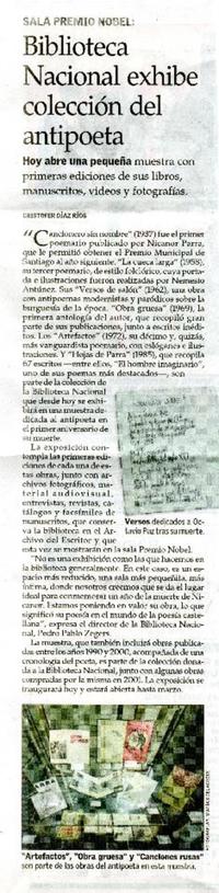 Biblioteca Nacional exibe colección del antipoeta [artículo] Cristofer Díaz Ríos.
