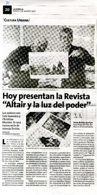 Hoy presentan la Revista "Altair y la luz del poder" [artículo]