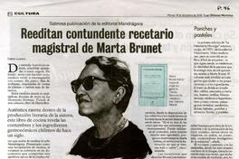 Reeditan contundente recetario magistral de Marta Brunet [artículo] Fabían Llanca.