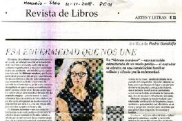 Esa enfermedad que nos une [artículo] / Pedro Gandolfo. El Mercurio (Diario : Santiago, Chile)-- nov. 11, 2018, (Revista de Libroas), p. E11. .