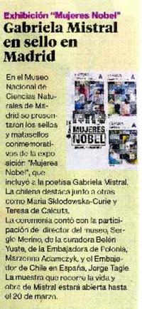 Gabriela Mistral en sello en Madrid [artículo] / La Segunda (Diario : Santiago, Chile)-- ene. 12, 2018, p. 36. .