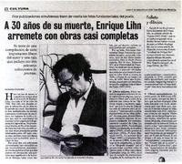 A 30 años de su muerte, Enrique Lihn arremete con obras casi completas [artículo] Leonardo Sanhueza.