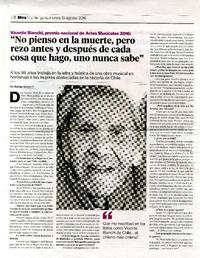 "No pienso en la muerte, pero rezo antes y después de cada cosa que hago, uno nunca sabe" [artículo] Rodrigo Garrido T.
