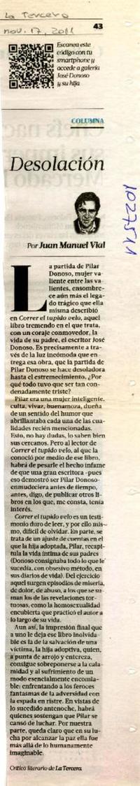 Desolación [artículo] / Juan Manuel Vial. La Tercera (Diario : Santiago, Chile)-- nov. 17, 2011, p. 43. 1 página : ilustraciones en blanco y negro ; 39,5 cm. .