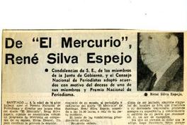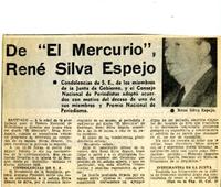 Falleció exdirector de "El Mercurio", René Silva Espejo. [artículo] / El Sur (Diario : Concepción, Chile)-- mayo 28, 1980, p. 1 y 10. .