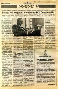 Foxley y el programa económico de la Concertación [entrevista] / [artículo] : Sandra Novoa. La Época (Diario : Santiago, Chile)-- jul. 2, 1989, p. 29-30. .