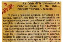 Materias: Autores chilenos - Mac Hale, Tomás P. - Crisis de la Universidad de Chile