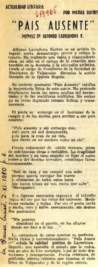 País ausente" [artículo] / Matías Rafide. La Prensa (Diario : Curicó, Chile)-- nov. 2, 1980, p. 5. .