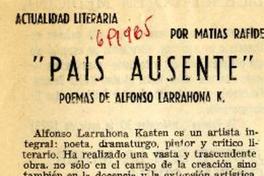 Materias: Autores chilenos - Larrahona Kästen, Alfonso - País ausente