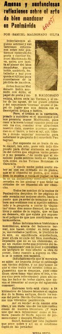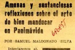 Materias: Autores chilenos - Maldonado Silva, Samuel - Amenas y sustanciosas reflexiones sobre el arte de buen manducar en Panimávida