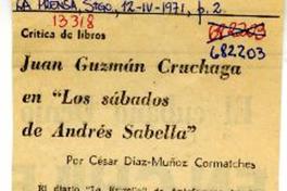 Juan Guzmán Cruchaga en "Los sábados de Andrés Sabella" [artículo] / César Díaz-Muñoz Cormatches. La Prensa (Santiago, Chile)-- abr. 12, 1971, p. 2. .