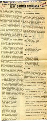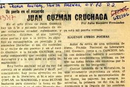 Juan Guzmán Cruchaga [artículo] / Julio Ramírez Fernández. La Prensa Austral (Punta Arenas, Chile)-- mayo 4, 1975, p. 2. .
