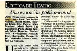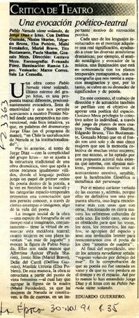 Una evocación poético-teatral [artículo] / Eduardo Guerrero. La Epoca (Santiago, Chile)-- nov. 30, 1991, p. 35. .
