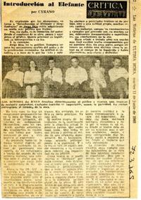 Introducción al elefante [artículo] / Cyrano. Ultima Hora (Santiago, Chile)-- jun. 11, 1968, p. 13. fot. .