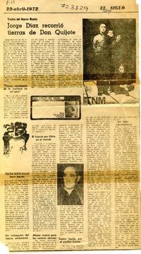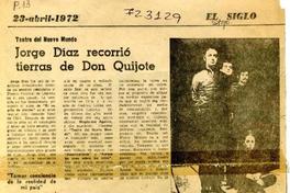 Jorge Díaz recorrió tierras de Don Quijote [artículo] / Virginia Vidal. El Siglo (Diario : Santiago, Chile)-- abr. 23, 1972, p. 13. retr. .