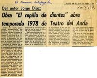Obra "El cepillo de dientes" abre temporada 1978 de Teatro del Ancla. [artículo]