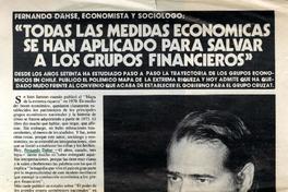 Todas las medidas económicas se han aplicado para salvar a los grupos financieros [artículo] / Margarita Serrano. Cosas (Santiago, Chile)-- no. 211 (oct. 30, 1984) p. 71-73. retr. .