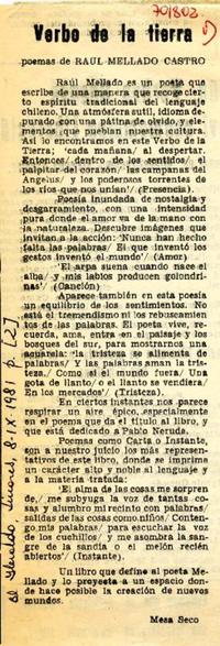 Verbo de la tierra [artículo] / Mesa Seco. El Heraldo (Diario : Linares, Chile)-- sept. 8, 1981, p. 2. .