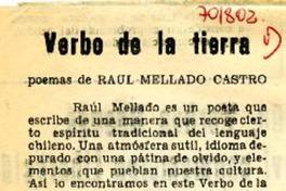 Materias: Autores chilenos - Mellado, Raúl - Verbo de la tierra y otros poemas