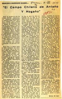 "El campo chileno de antaño y hogaño" [artículo] / Hernán del Solar. El Mercurio (Diario : Santiago, Chile)-- jul. 15, 1970, p. 2. .