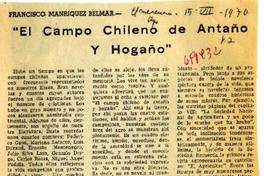 Materias: Autores chilenos - Manríquez Belmar, Francisco - Campo chileno de antaño y hogaño