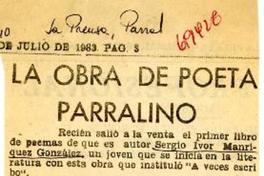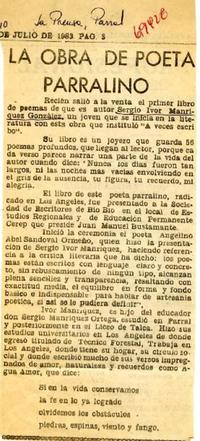 La obra de poeta parralino [artículo] / La Prensa (Diario : Parral, Chile)-- jul. 10, 1983, p. 3. .
