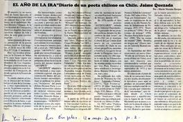 El año de ira "Diario de un poeta chileno en Chile. Jaime Quezada [artículo] / Mario Morales Burgos. La Tribuna (Diario : Los Angeles, Chile)-- sept. 12, 2003, p. 2. .