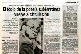 El ídolo de la poesía subterránea vuelve a circulación [artículo] Rodrigo Castillo R.
