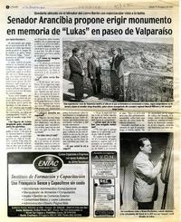 Senador Arancibia propone erigir monumento en memoria de "Lukas" en paseo de Valparaíso [entrevista] / [artículo] : Carlos Paredes N. La Estrella (Diario : Valparaíso, Chile)-- ago. 31, 2002, p. 4. 1 página : ilustración en blanco y negro. .