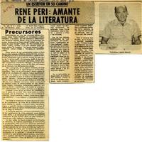 René Peri: amante de la literatura. [artículo] La Estrella de Arica (Diario : Arica, Chile)-- abr. 27, 1978, p. 5. 1 página : ilustración en blanco y negro. .